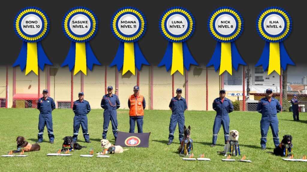 Atualmente, os quatro cães com maior número de qualificações no país pertencem ao CBMSC. Moana ocupa o topo, com Nível 11, a graduação mais alta do Brasil, atuando em quatro modalidades. Na sequência aparecem Bono (Nível 10), Nick (Nível 8) e Luna (Nível 7). Ao todo, Santa Catarina conta com 10 cães que somam 54 certificações, resultado do rigor técnico do treinamento e da integração entre o animal e o condutor, formando o chamado binômio.