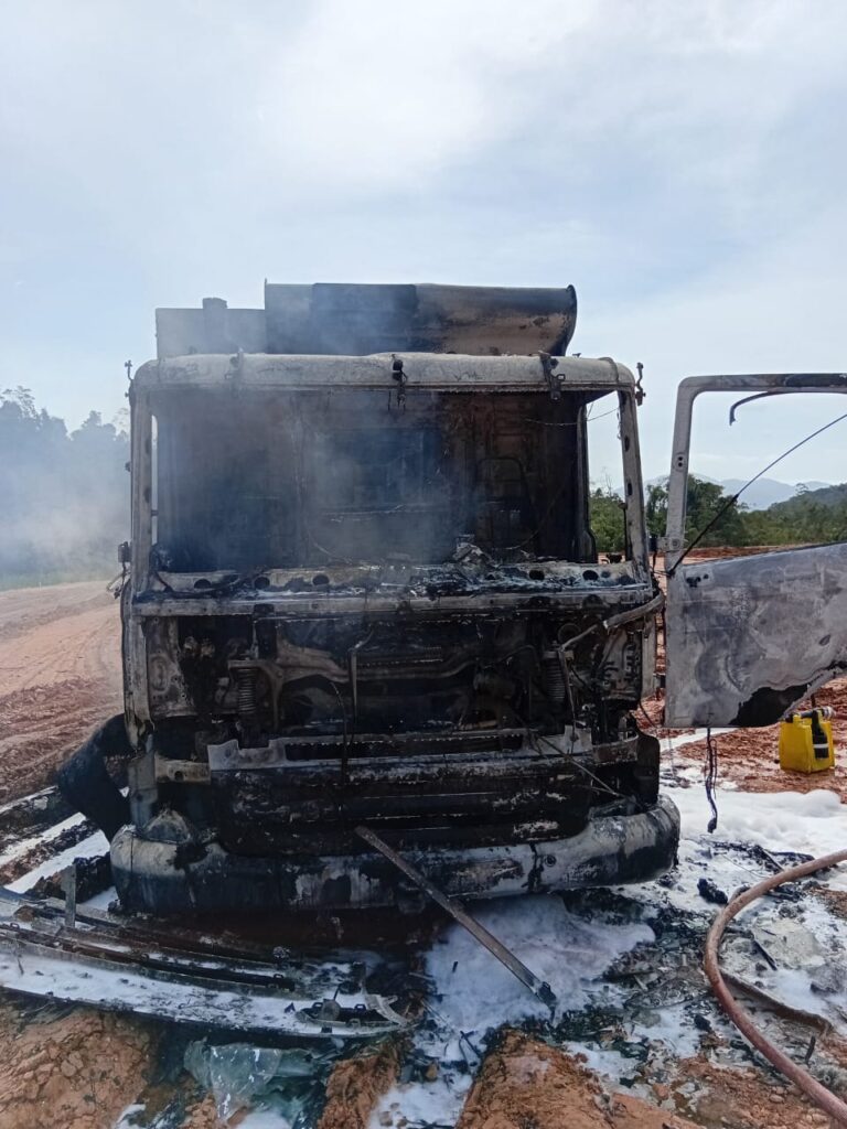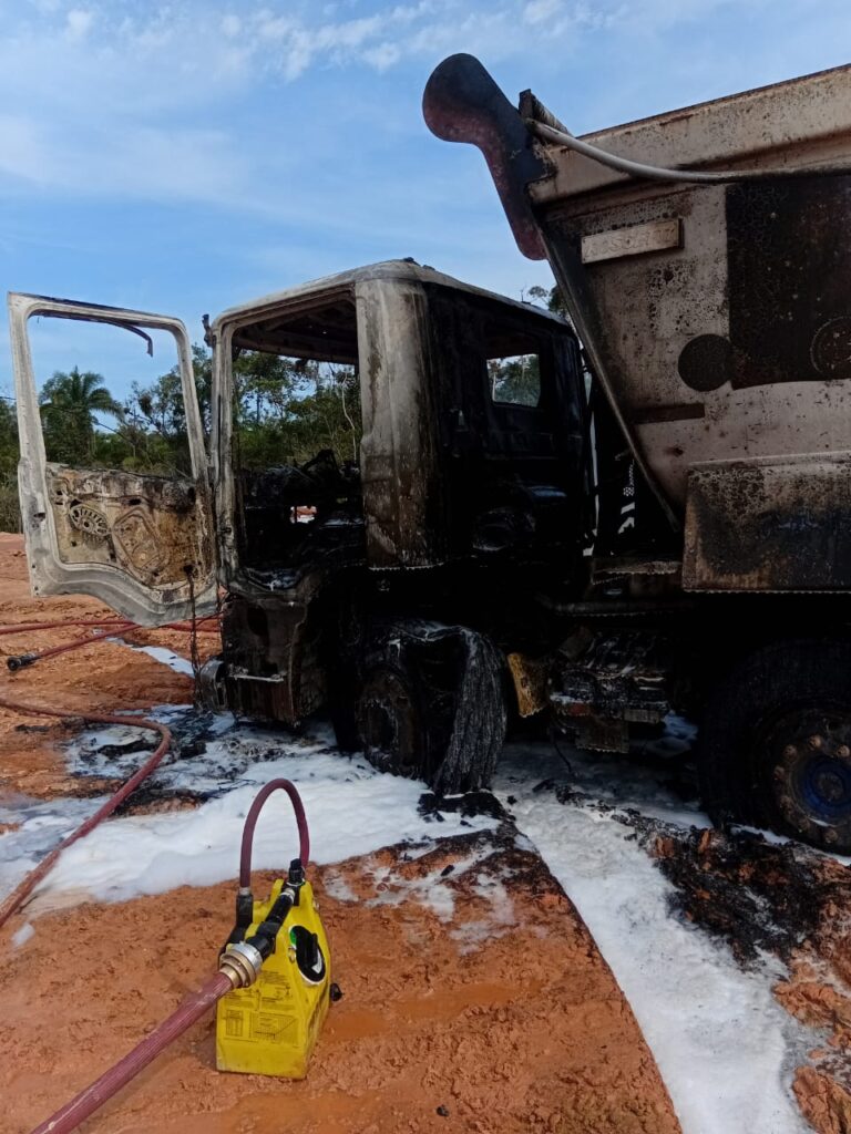 Na tarde deste sábado (25), um caminhão caçamba Scania P420 foi consumido pelas chamas na SC-416, km 22, em Itapoá. A ocorrência foi atendida pelo Corpo de Bombeiros Militar de Itapoá, que utilizou aproximadamente 2.000 litros de água e 10 litros de Líquido Gerador de Espuma (LGE) para controlar o incêndio.