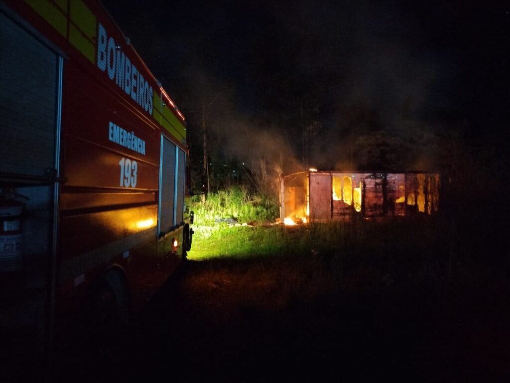 Um incêndio destruiu o baú de um caminhão abandonado em um terreno baldio no contorno viário Armindo Echer, no bairro Perpétuo Socorro, em São Lourenço do Oeste. A ocorrência foi registrada por volta das 22h09 desta quinta-feira (30).