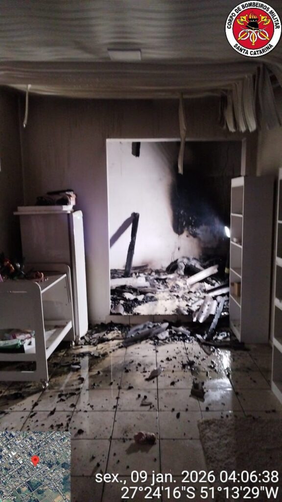 Um incêndio atingiu uma residência unifamiliar na madrugada desta sexta-feira (09), por volta das 3h13, na rua Benjamin Constant, no Centro de Campos Novos, no Meio-Oeste catarinense.