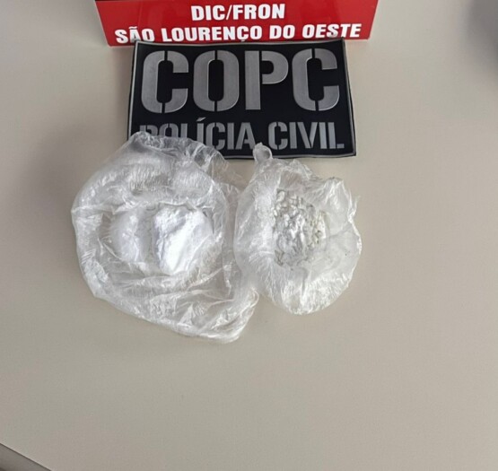 Durante a abordagem a um veículo, os cães de faro localizaram duas porções de maconha. O automóvel era ocupado por uma mulher de 26 anos e um homem de 30 anos. Com a dupla encaminhada à delegacia, a mulher confirmou que transportava duas porções de cocaína, que seriam fracionadas e comercializadas no município.