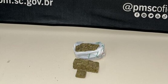 Com base nas informações recebidas, as guarnições se deslocaram até o endereço indicado, onde localizaram um veículo com três ocupantes. Durante a abordagem e a busca veicular, os policiais encontraram 112,6 gramas de maconha, fracionadas em dois torrões, além de material utilizado para a embalagem da droga.
