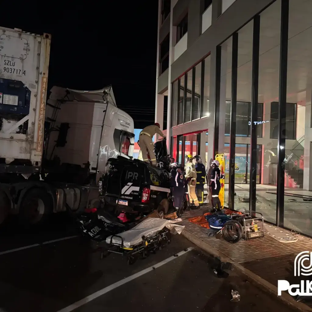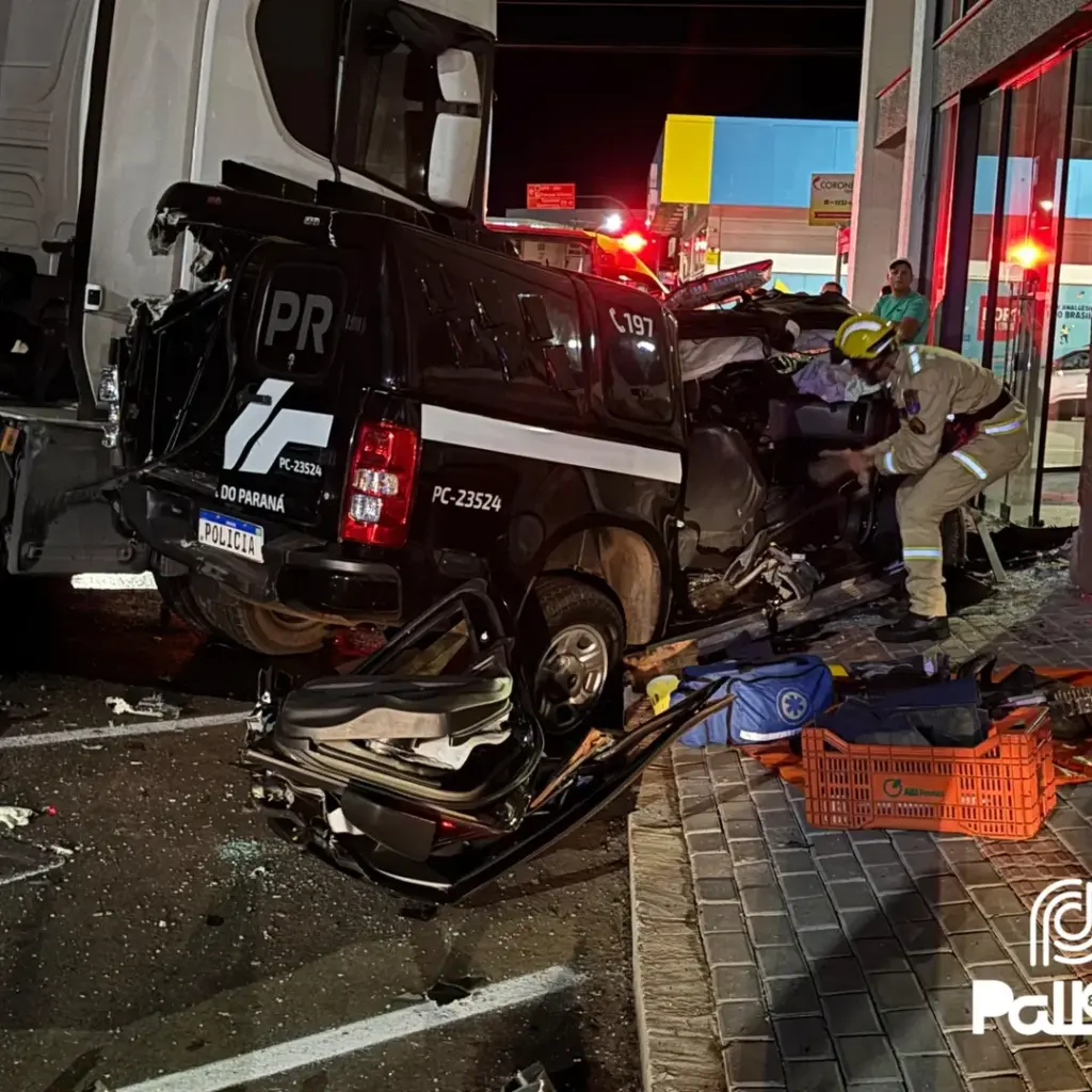 Um grave acidente de trânsito foi registrado na madrugada desta terça-feira (4), por volta das 2h45, na área central de Coronel Vivida, no Sudoeste do Paraná. A colisão envolveu uma viatura da Polícia Civil e um caminhão no cruzamento das ruas Clevelândia e Major Estevão Ribeiro do Nascimento, deixando dois policiais feridos.