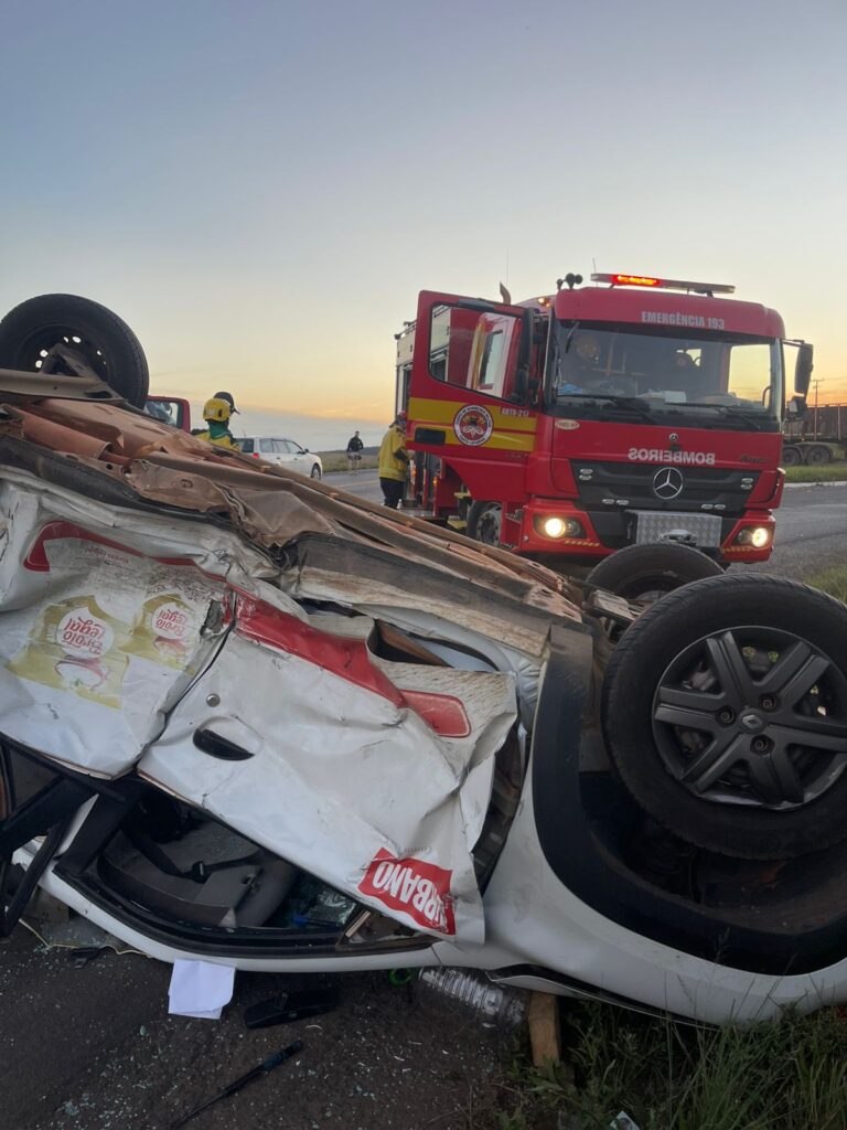 De acordo com o Corpo de Bombeiros Militar, o acidente aconteceu por volta das 17h25 e envolveu um Renault Kwid e um Volvo XC60. Com o impacto da batida, o Kwid capotou e ficou sobre a pista, enquanto o outro veículo permaneceu imobilizado na via.