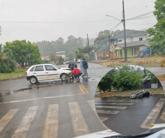 Um homem sofreu ferimentos leves após uma colisão entre carro e moto na esquina das Ruas Porto Alegre com a Tietê, no Bairro Universitário, em Chapecó, por volta das 14h30 desta quarta-feira (10). A vítima foi atendida pelo SAMU, imobilizada e encaminhada para atendimento médico.