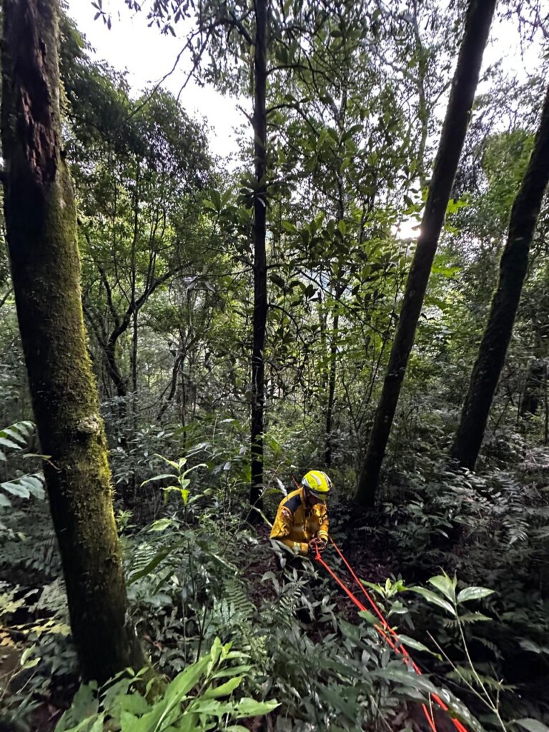Devido ao terreno extremamente íngreme, foi necessário solicitar apoio de efetivo adicional do 14º Batalhão de Bombeiros Militar. A operação de retirada da vítima teve início por volta das 17h e exigiu a montagem de sistemas de redução de força para o resgate em ribanceira. A extração do corpo foi concluída às 18h40, encerrando um trabalho que durou mais de 12 horas ininterruptas neste domingo.