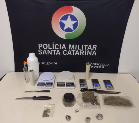 Ao todo, foram apreendidos cerca de 191,3 gramas de flor de maconha, 16,5 gramas de maconha sintética (“dry”), um frasco de substância conhecida como “loló”, além de sementes de maconha.