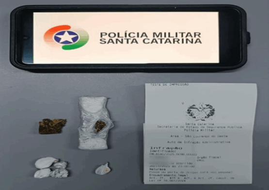Dois homens foram autuados pela Polícia Militar de São Lourenço do Oeste na noite de 20 de novembro de 2025 por posse e consumo de drogas em locais públicos. As ocorrências aconteceram no Bairro Santa Catarina e na Praça da Liberdade, no Centro da cidade.