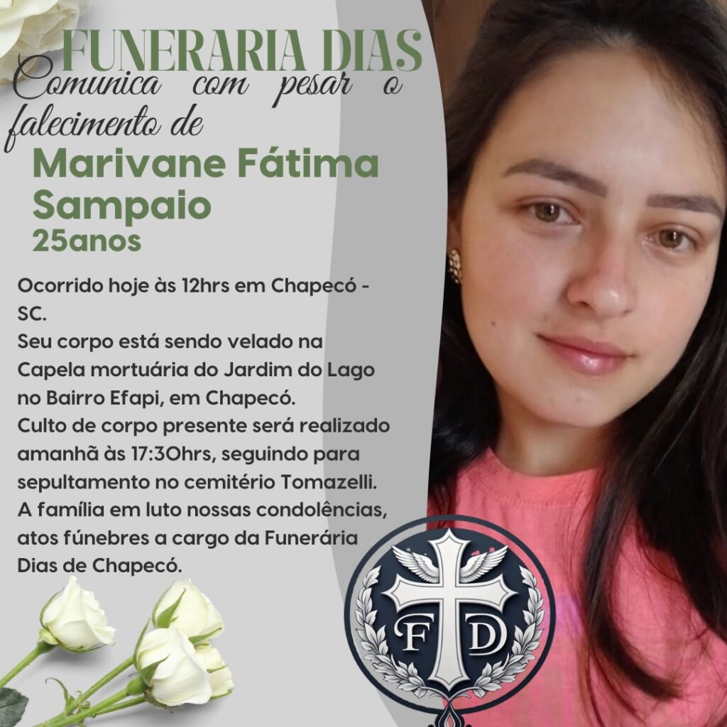 Amigos e familiares se despedem de Marivane Fátima Sampaio, de 25 anos, vítima de feminicídio. Marivane faleceu no início da tarde de ontem (06), no Hospital Regional do Oeste (HRO), em decorrência dos ferimentos gravíssimos sofridos após ser atacada violentamente pelo ex-companheiro, Rafael Ferraz, na última sexta-feira (02).