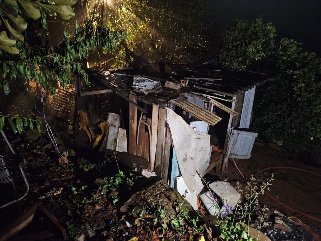 De acordo com o Corpo de Bombeiros Militar de Santa Catarina, a edificação possuía aproximadamente 20 metros quadrados e já estava em fase de desenvolvimento completo do incêndio, com chamas generalizadas no momento da chegada das equipes ao local.