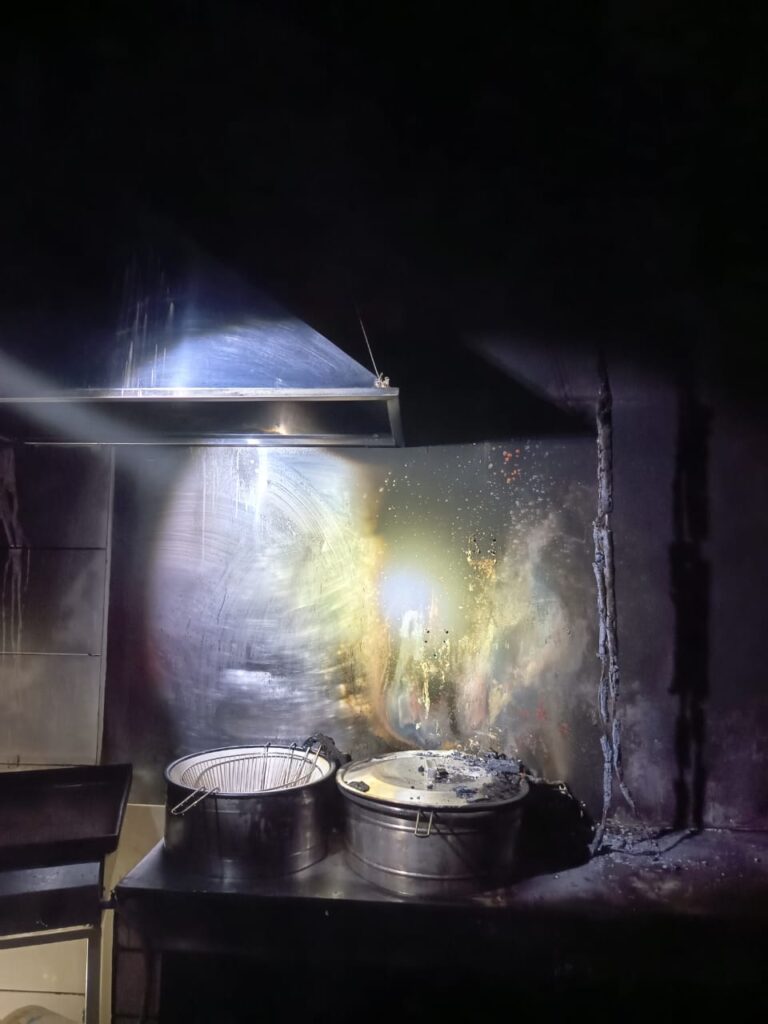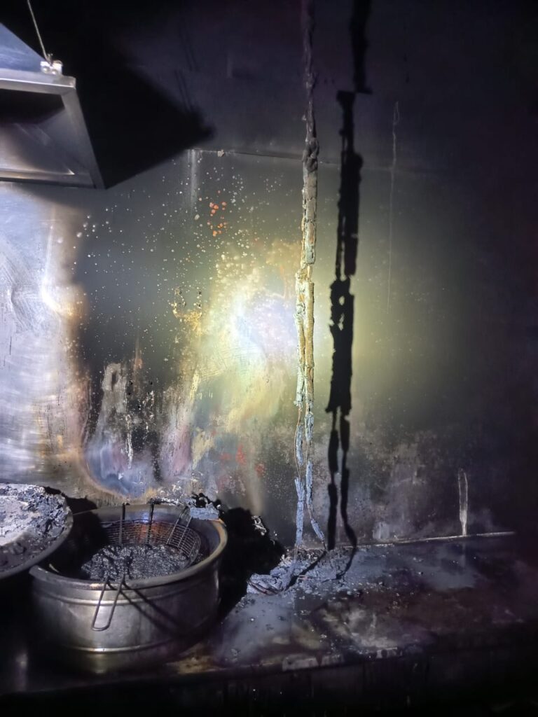 O foco principal do incêndio foi localizado na cozinha do restaurante, próximo a duas fritadeiras elétricas que estavam posicionadas sobre um balcão. Para a extinção das chamas e o trabalho de rescaldo, foram utilizados aproximadamente 100 litros de água.