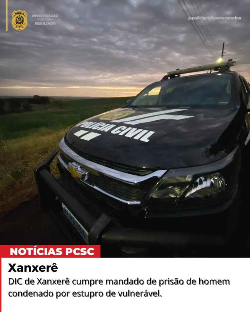 De acordo com a Polícia Civil, a ordem judicial foi expedida pela Vara Criminal da Comarca de Xanxerê, com base em sentença condenatória já transitada em julgado, ou seja, sem possibilidade de recurso. O crime está previsto no artigo 217-A do Código Penal. O homem ainda tem 14 anos, 4 meses e 24 dias de pena a cumprir.