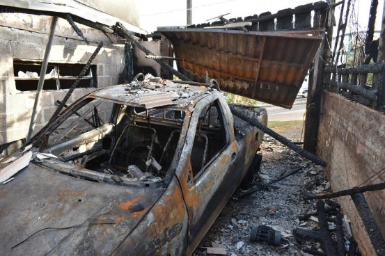 O Corpo de Bombeiros foi acionado, mas o fogo já havia destruído completamente dois veículos, três roçadeiras, um carrinho de cortar grama, diversos equipamentos de jardinagem, móveis, eletrodomésticos e a estrutura superior da garagem, que sofreu colapso total. O prejuízo para o dono da residência incendiada, um homem de 67 anos e pai do investigado, foi estimado em R$ 140 mil.