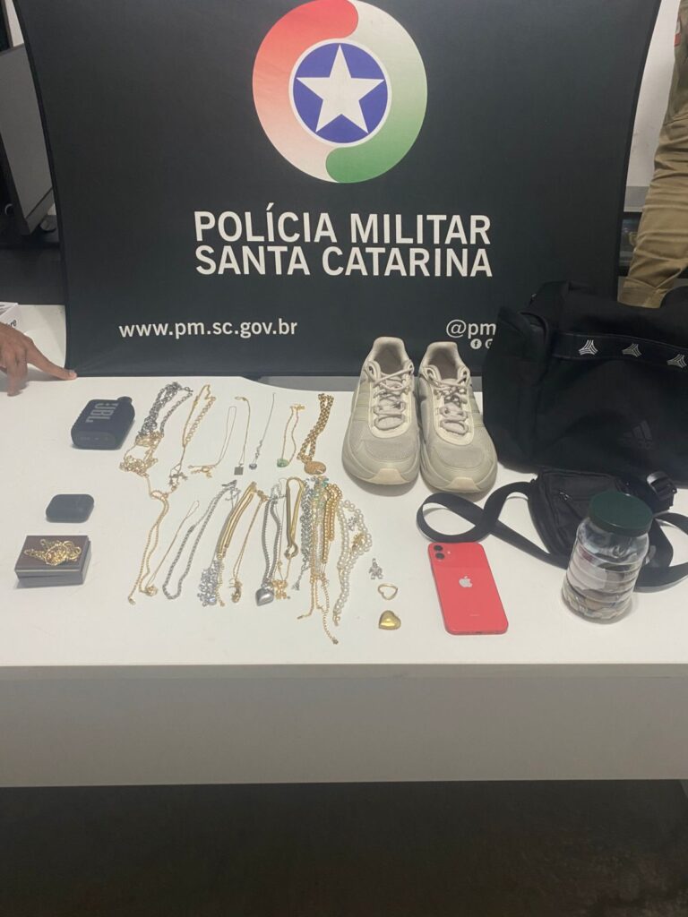 Todos os objetos furtados foram recuperados e o homem foi conduzido à Delegacia de Polícia Civil para os procedimentos cabíveis.