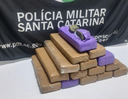Após abordagem, os policiais constataram um forte odor de maconha vindo do interior do carro. Durante a revista pessoal, nada foi encontrado com o suspeito, mas, na busca veicular, uma caixa de papelão contendo 14 tabletes de maconha foi localizada.