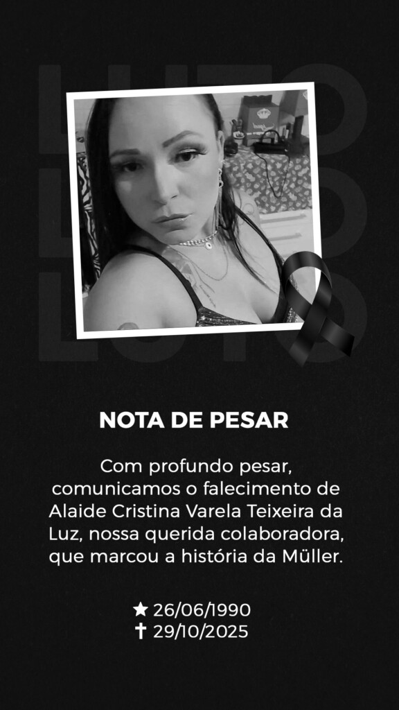 Nota de Pesar – “Com profundo pesar, comunicamos o falecimento de Alaide Cristina Varela Teixeira da Luz, nossa querida colaboradora que marcou a história da Müller.”
