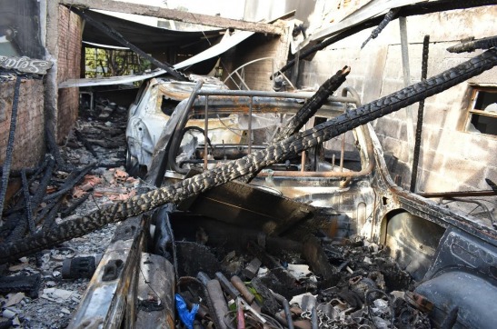O incêndio resultou na destruição total de dois veículos automotores e diversos equipamentos de jardinagem e domésticos. A estrutura da residência principal sofreu colapso na cobertura da garagem e carbonização intensa. A casa vizinha, de propriedade de uma mulher de 63 anos, também sofreu danos significativos em paredes e telhado devido ao calor intenso.