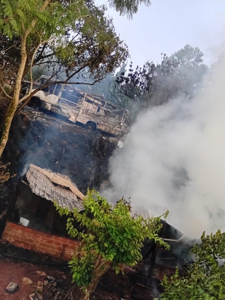 Um incêndio em um galpão mobilizou o 12º Batalhão de Bombeiros Militar na manhã desta segunda-feira (02), no Centro de Bandeirante, no Oeste de Santa Catarina. A ocorrência foi registrada por volta das 5h30, na Rua Adroaldo Amorim, e atingiu também um micro-ônibus que estava estacionado na parte superior de um barranco ao lado da edificação.