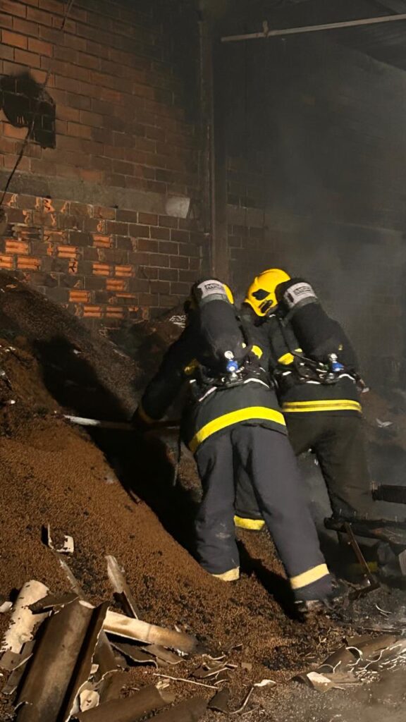 De acordo com o Corpo de Bombeiros, a ocorrência foi atendida pelo Trem de Socorro de Garuva, com as viaturas ASU-477 e ABTR-183, após acionamento do COBOM. No local, foi confirmada a natureza do chamado como incêndio em um galpão localizado em um sítio. A edificação armazenava tratores, insumos combustíveis, ração animal e ferramentas agrícolas, caracterizando uma elevada carga de incêndio.