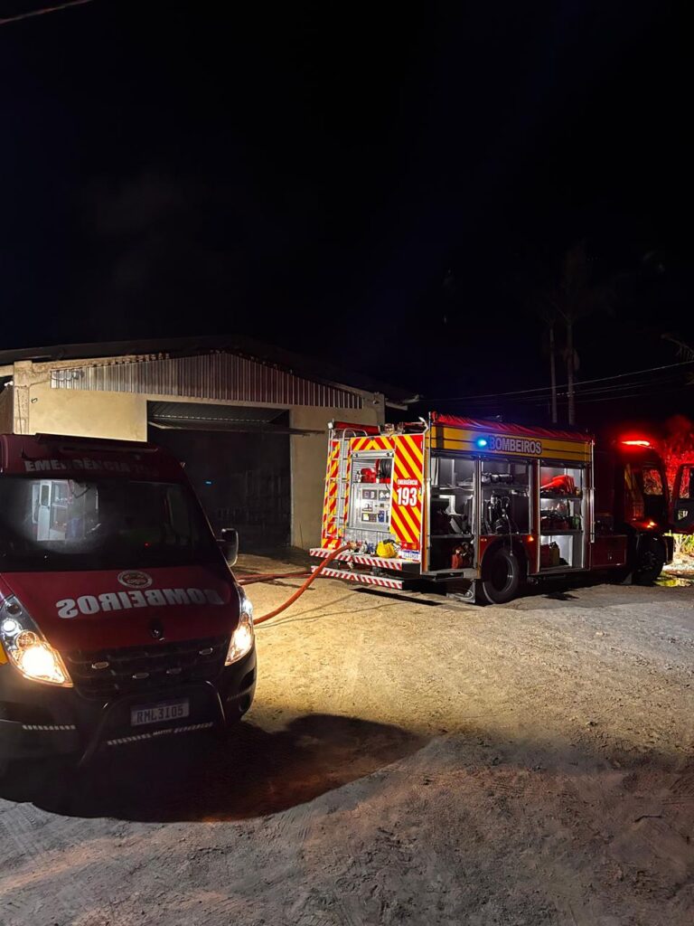Um incêndio em galpão mobilizou o Corpo de Bombeiros Militar na madrugada desta sexta-feira (19), por volta das 2h05, na Estrada Picadão, lateral da SC-416, no km 4, no município de Garuva, no Norte de Santa Catarina.