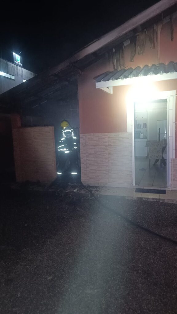 Um incêndio em uma residência unifamiliar mobilizou o Corpo de Bombeiros Militar de Santa Catarina na madrugada desta quinta-feira (15), no bairro Caminho Novo, em Palhoça. As chamas atingiram a lavanderia da casa e envolveram uma máquina de lavar roupas e um botijão de gás, mas foram rapidamente controladas, sem registro de feridos.