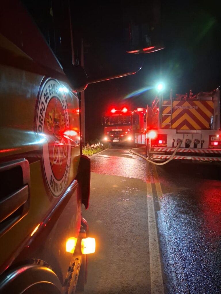 A Polícia Militar e equipes da Celesc também estiveram presentes, prestando apoio e adotando os procedimentos necessários.