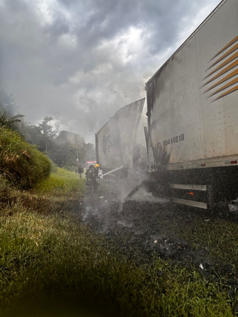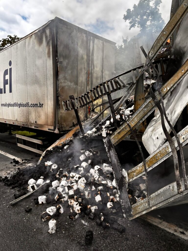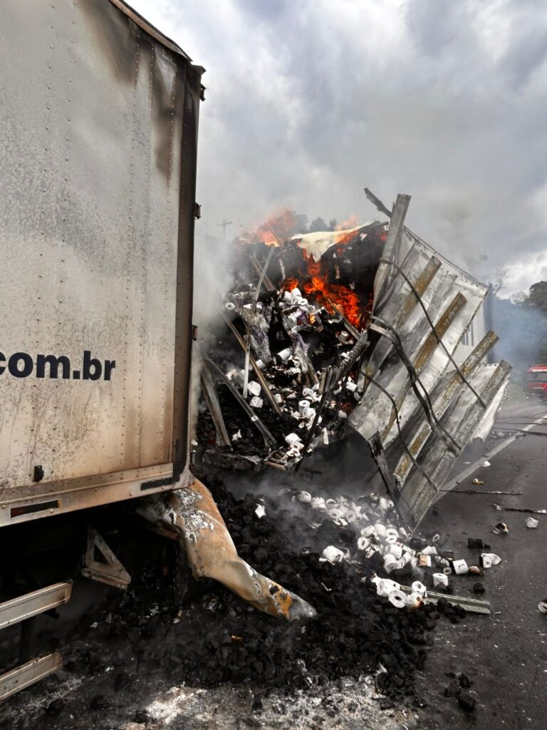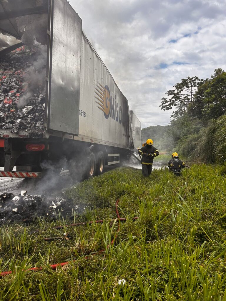Um incêndio de grandes proporções atingiu um caminhão com carreta carregado com 22 toneladas de papel higiênico na manhã deste domingo (16) na BR-376, em Guaratuba, no Paraná. O chamado foi registrado às 10h04 e mobilizou bombeiros de Santa Catarina e do Paraná.