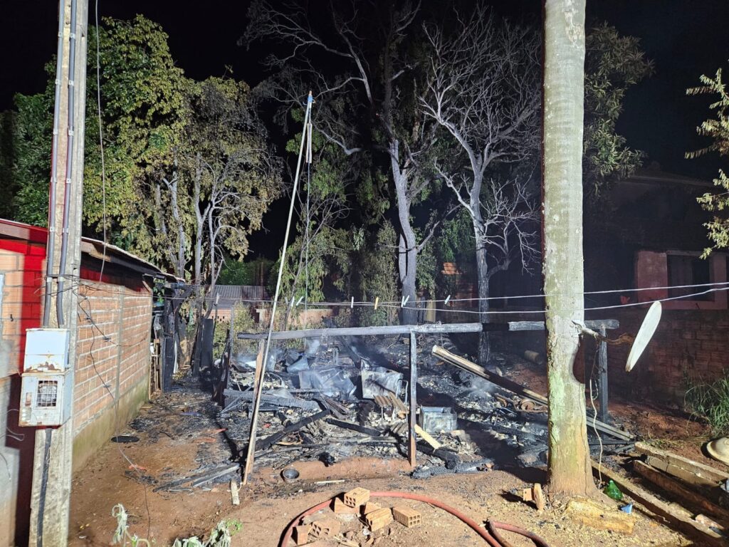 Uma residência de madeira foi totalmente destruída por um incêndio na noite desta quarta-feira (21), por volta das 23h54min, na rua Antônio Ezedio Marmentini, em Bom Jesus, no Oeste de Santa Catarina. O fogo mobilizou equipes do Corpo de Bombeiros Militar de Xanxerê, que atuaram no combate às chamas e na proteção das casas vizinhas. Ninguém ficou ferido.