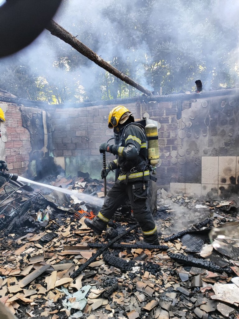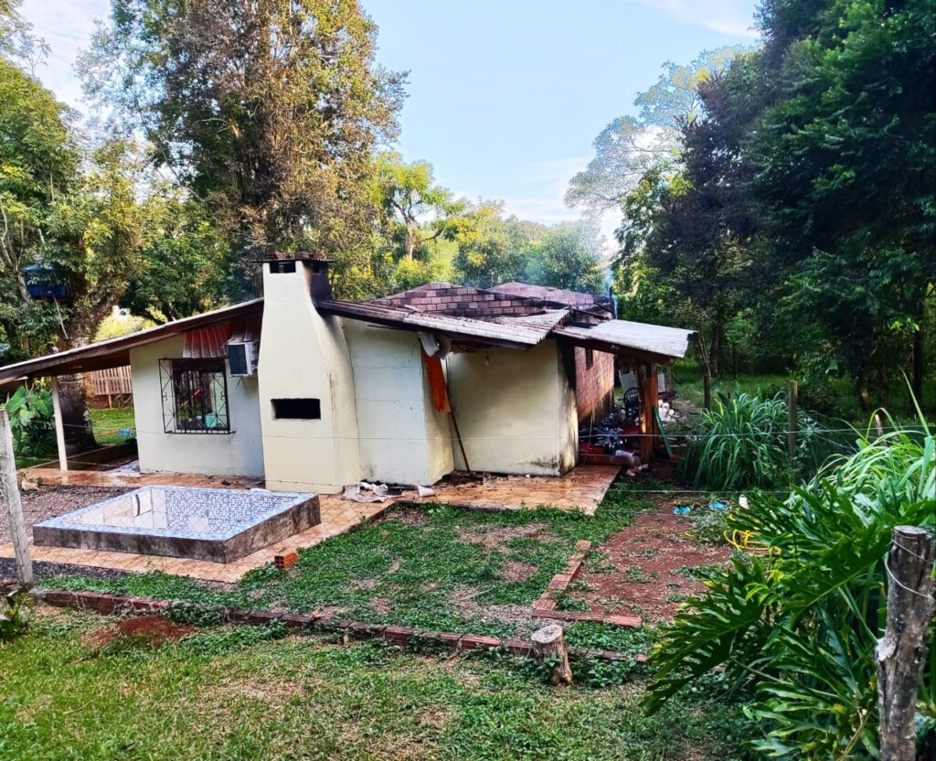Uma residência foi destruída por um incêndio no fim da tarde desta quinta-feira (12), por volta das 17h02, na comunidade de Linha Serraria, interior de Chapecó. O imóvel, de aproximadamente 90 metros quadrados, era uma edificação unifamiliar mista, construída em alvenaria e madeira.