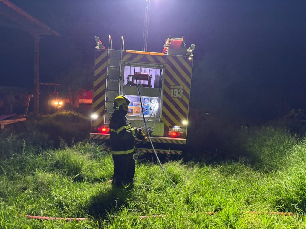 Na chegada à propriedade, os bombeiros constataram que se tratava de um galpão de madeira com aproximadamente 50 metros quadrados, localizado a uma distância segura das demais edificações. O incêndio já se encontrava em fase de diminuição, após moradores vizinhos e os proprietários do sítio, que residem na cidade, chegarem ao local. Segundo relato, o caseiro havia informado por telefone que o galpão estava em chamas, sem que fosse possível realizar qualquer ação inicial de combate.