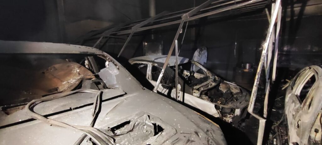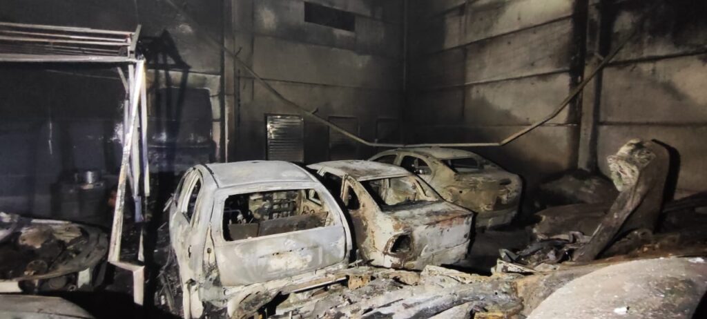 Durante a ação, 16 veículos foram atingidos pelo fogo ou pelo calor, com alguns totalmente destruídos. Após a extinção do incêndio, as equipes realizaram o resfriamento e a ventilação do ambiente. A edificação foi deixada fechada para perícia, e as causas do incêndio ainda serão investigadas.