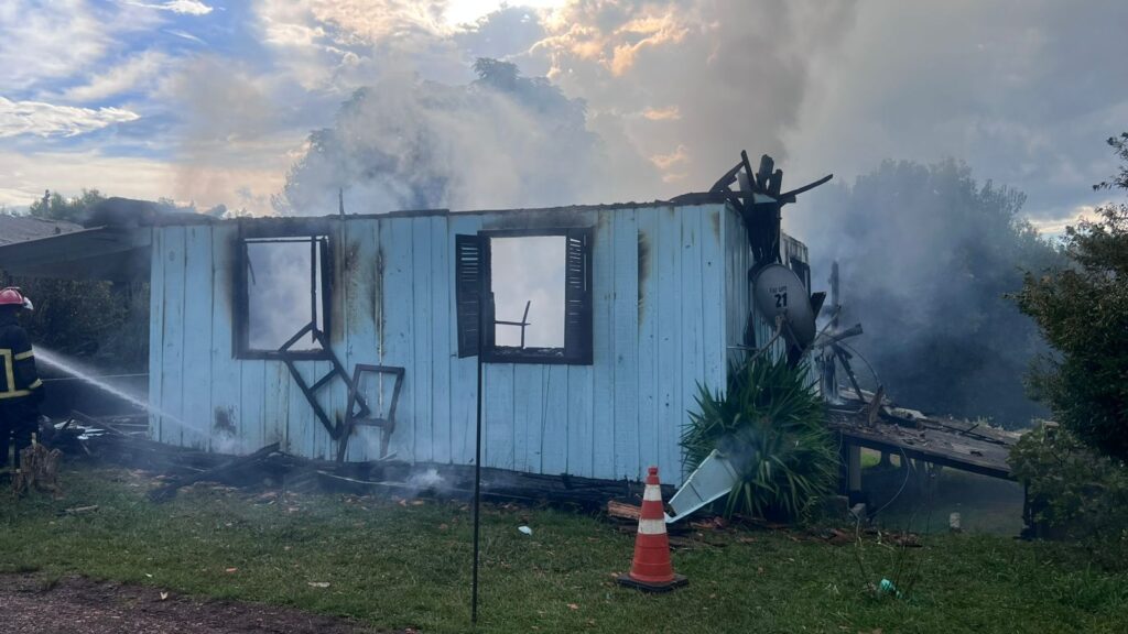 Um incêndio atingiu uma residência de dois pavimentos na tarde desta terça-feira (16), por volta das 16h36, na Rua Ipê, na Vila Campina da Alegria, em Vargem Bonita, no Meio-Oeste catarinense. Duas crianças que estavam no imóvel conseguiram sair com o apoio de vizinhos e não ficaram feridas.