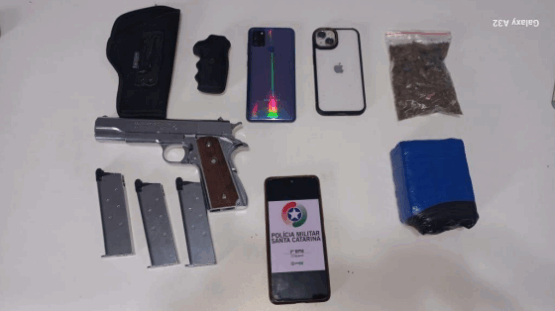 A ação foi realizada pelo 2º Batalhão de Polícia Militar de Fronteira (2º BPM/Fron) após troca de informações entre a Polícia Militar de Santa Catarina e a Brigada Militar do Rio Grande do Sul. O jovem, que havia se mudado recentemente para Chapecó, estaria exibindo armas de fogo na residência da mãe.