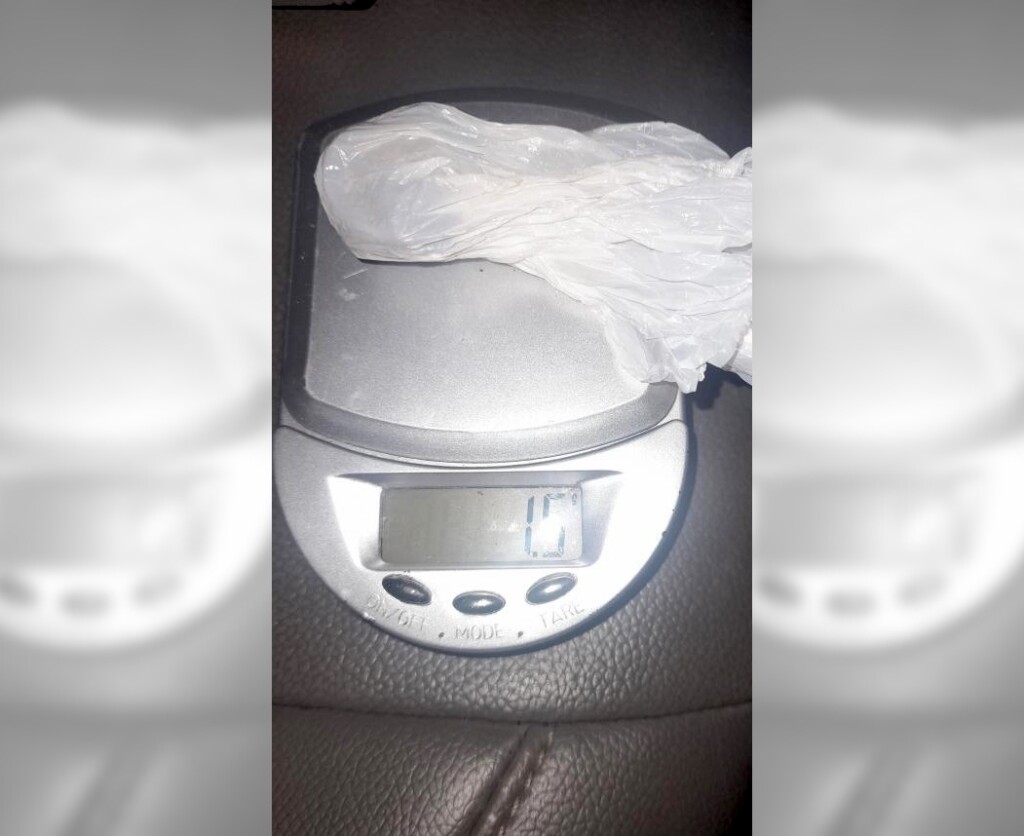 Durante a abordagem, a mulher tentou se desfazer de uma embalagem, a qual foi identificada pela equipe policial, contendo 1,5 gramas de maconha.