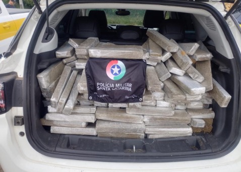 Durante a fiscalização, as equipes abordaram um veículo que possuía registro de furto ou roubo. Ao realizar a vistoria, os policiais localizaram cerca de 443,71 quilos de maconha, distribuídos em 686 tabletes, que estavam sendo transportados no automóvel.