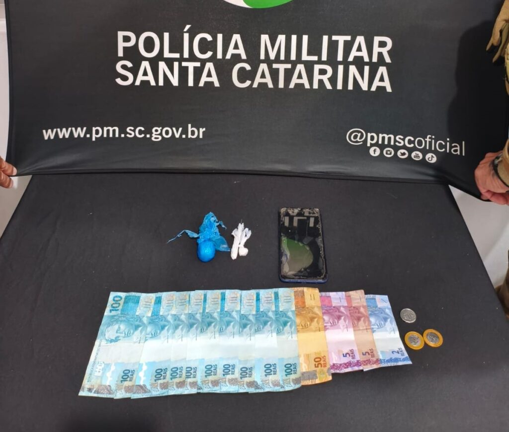 Diante da situação de flagrante, o homem de 32 anos recebeu voz de prisão e foi encaminhado à Delegacia de Polícia Civil, junto com a droga apreendida, o dinheiro e um aparelho celular.