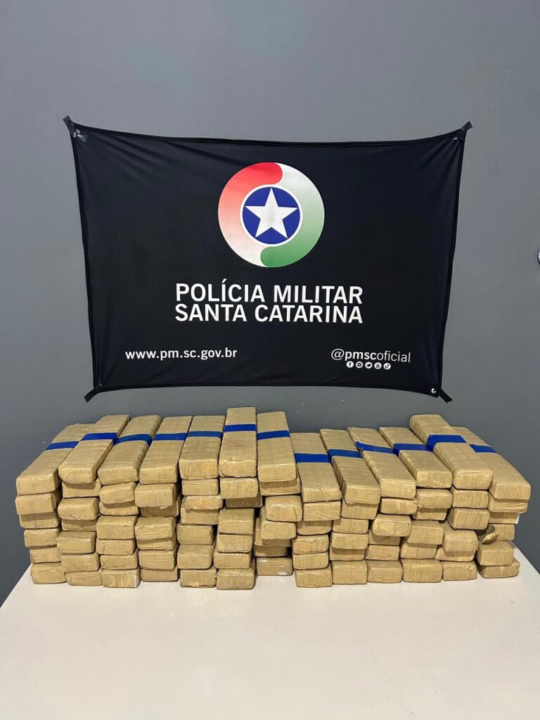 A Polícia Militar apreendeu mais de 70 quilos de maconha e prendeu um homem por tráfico de drogas na manhã desta quinta-feira (22), por volta das 5h, no Sul de Santa Catarina. A ação ocorreu após informações indicarem que um veículo Ford Fiesta estaria vindo de Florianópolis transportando grande quantidade de entorpecentes.