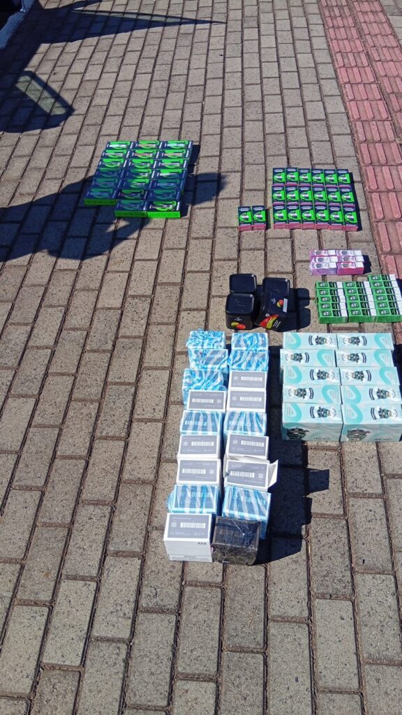 No entanto, em continuidade à fiscalização, foi localizada uma sacola contendo diversos produtos sem o devido desembaraço aduaneiro, caracterizando o crime de contrabando. Entre os itens apreendidos estavam cigarros eletrônicos, resistências, essências de nicotina, refis para cigarros eletrônicos e essências para narguilé.