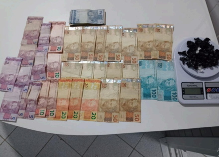 Com base nas informações, os policiais foram até o endereço indicado e perceberam intensa movimentação de pessoas e veículos no local. Diante da suspeita de tráfico, a equipe entrou na casa e localizou 25 porções de cocaína e R$1.083,00 em notas variadas.