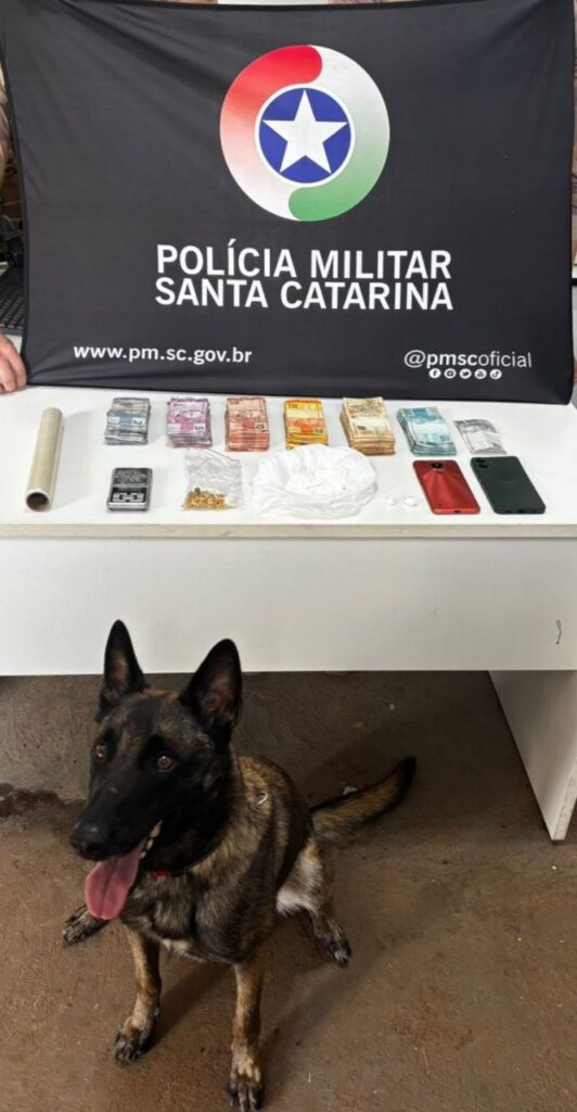No local, uma mulher de 23 anos também foi abordada. Durante as buscas, foram localizadas porções de cocaína e dinheiro em espécie em suas vestes. Com apoio de cão de faro, os policiais encontraram ainda porções de crack escondidas no imóvel, além de outros valores em dinheiro.