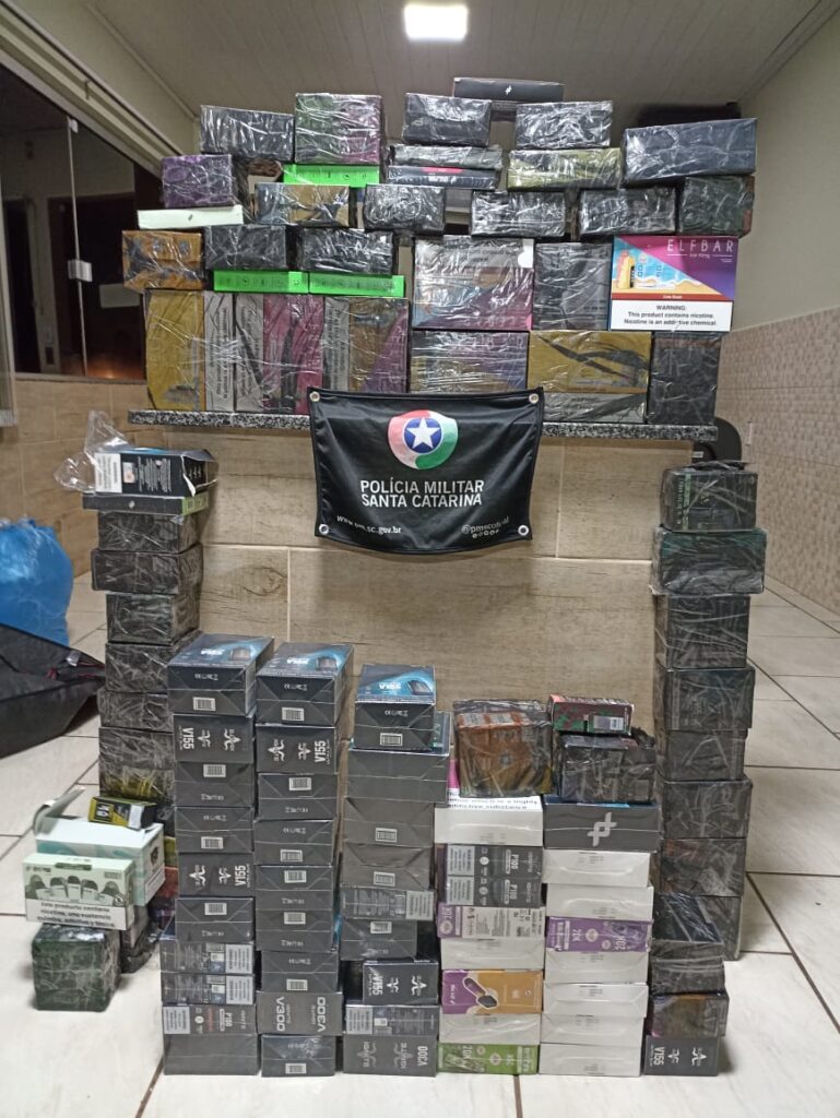 Já uma mulher, de 56 anos, transportava cerca de 230 unidades de cigarros eletrônicos e essências, também sem documentação fiscal.