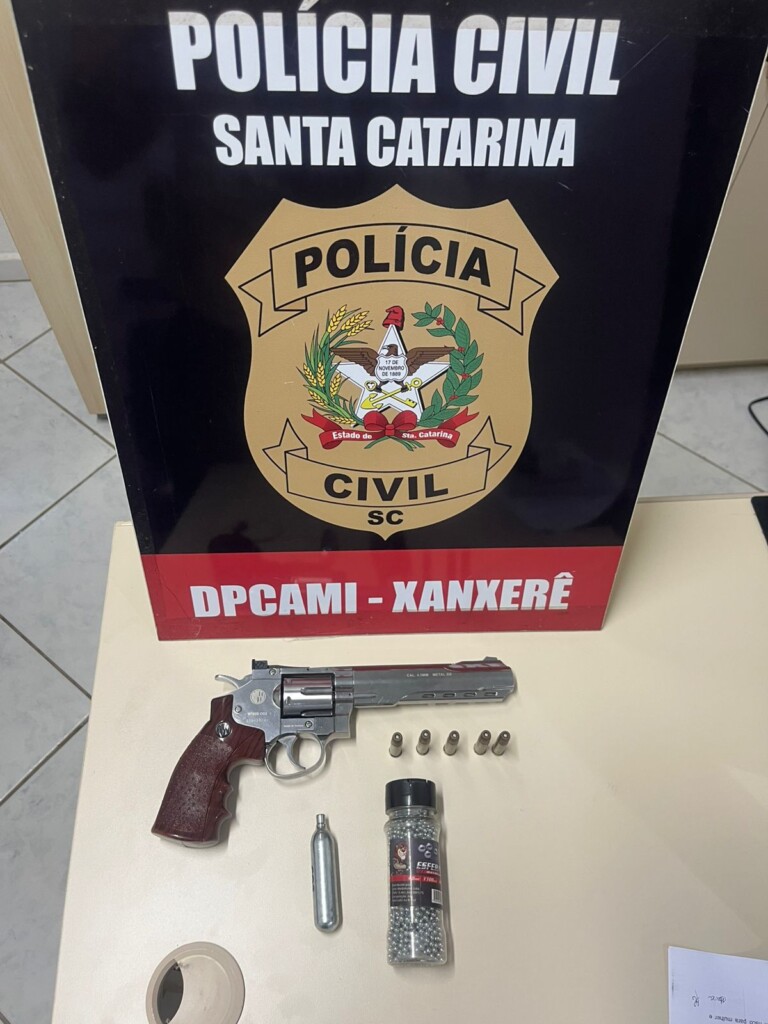 Durante a ação, foi apreendida uma arma de pressão supostamente utilizada pelo investigado para intimidar a vítima, que havia relatado à polícia menções frequentes ao uso de arma de fogo durante as ameaças. A apreensão do objeto foi considerada fundamental para garantir a segurança da vítima e a integridade da investigação.