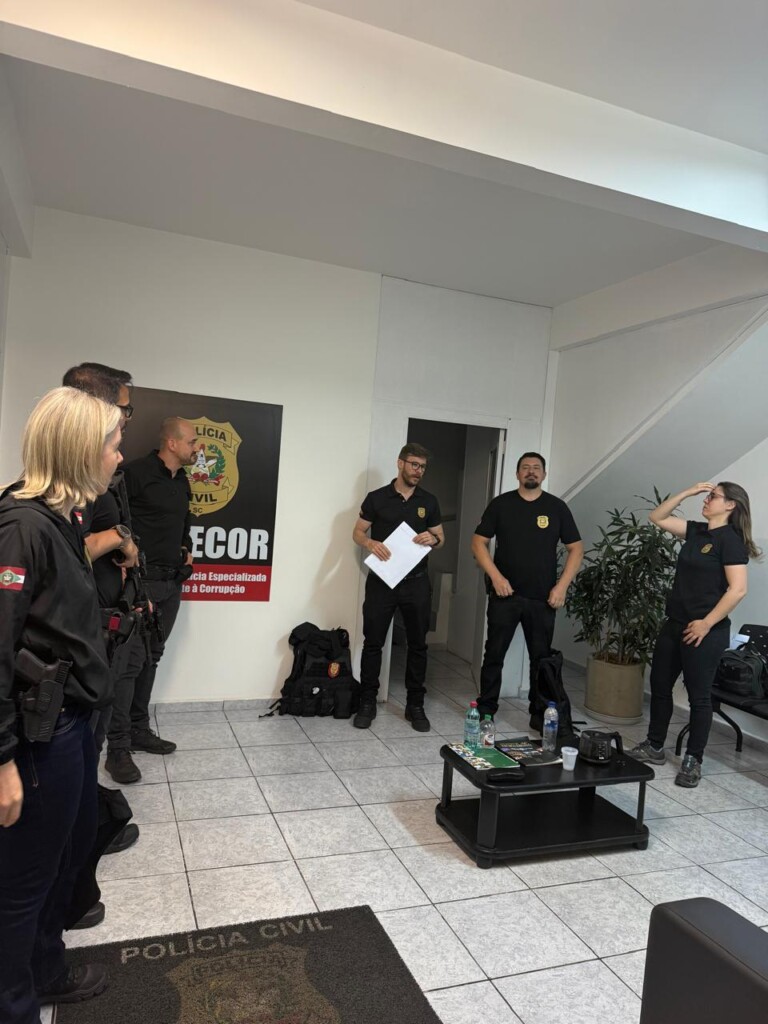 De acordo com a corporação, a operação é conduzida pela 5ª Delegacia de Combate à Corrupção de Chapecó (DECCOR/FRON), unidade vinculada à Diretoria Estadual de Investigações Criminais (DEIC), especializada em crimes complexos e contra a administração pública. As diligências contaram com o apoio de agentes da Divisão de Investigação Criminal (DIC) da 12ª Delegacia Regional de Polícia de Chapecó.
