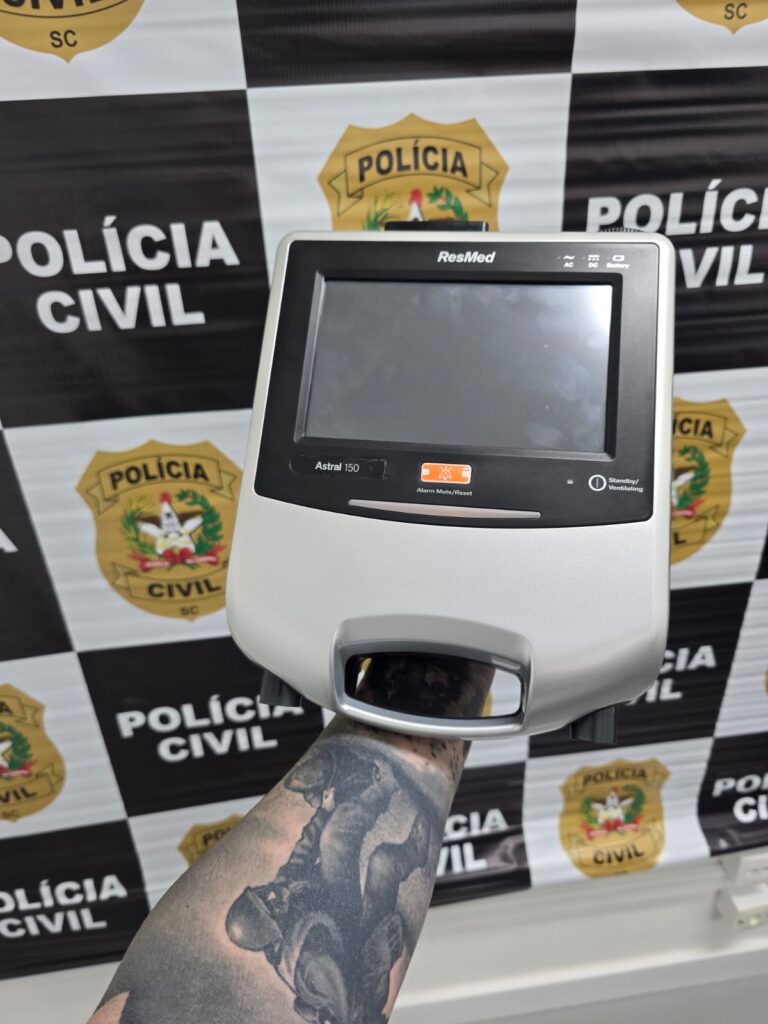 A Polícia Civil de Santa Catarina, por meio da Delegacia de Repressão a Roubos de Chapecó, recuperou na última sexta-feira (20) um ventilador mecânico pertencente ao hospital do município de Palmitos. O equipamento havia sido furtado no mês de janeiro de um caminhão de transporte estacionado em Chapecó.
