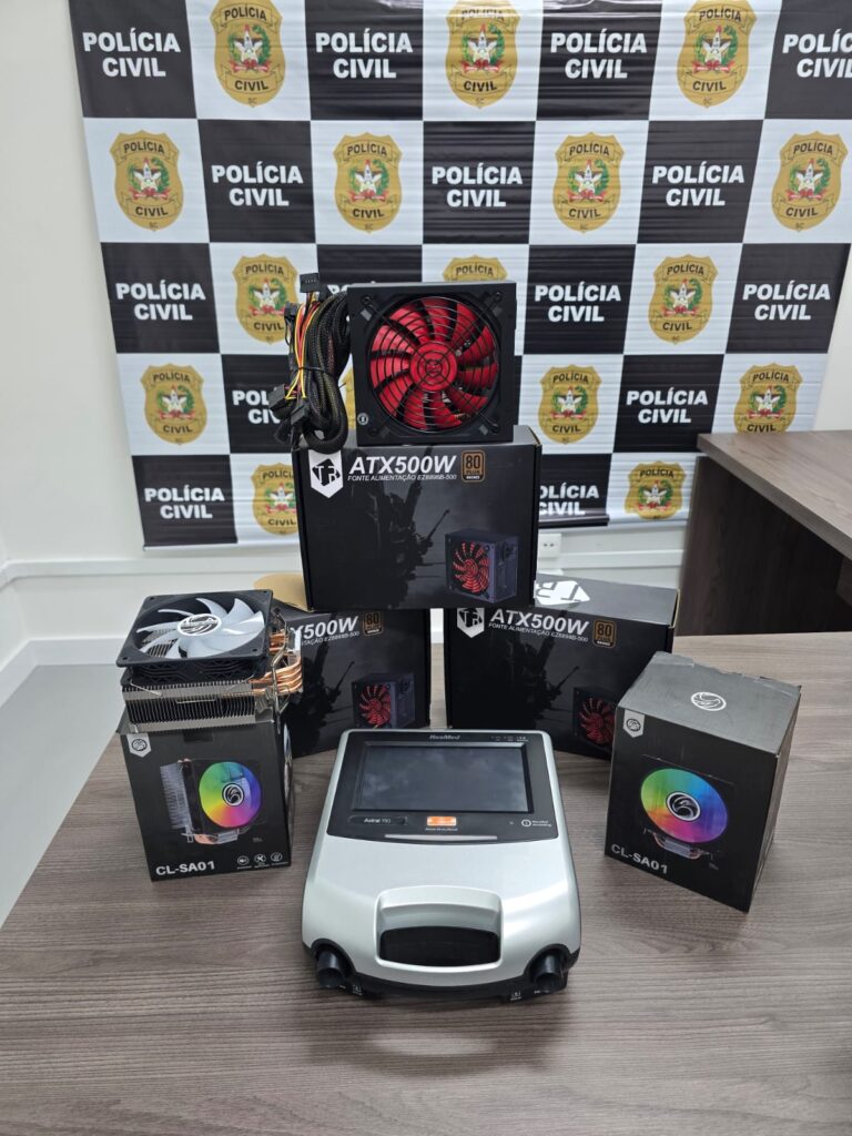 Segundo a Polícia Civil, o ventilador foi localizado com um dos suspeitos investigados na operação “Última Parada”, responsável por desarticular uma associação criminosa voltada à prática de furtos e receptação na região.
