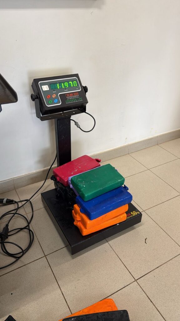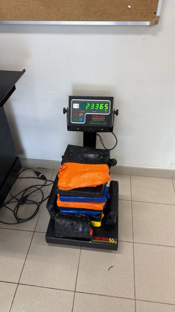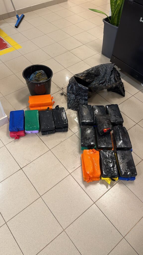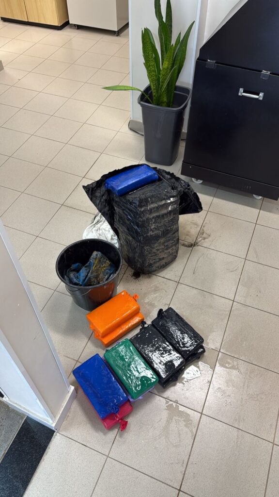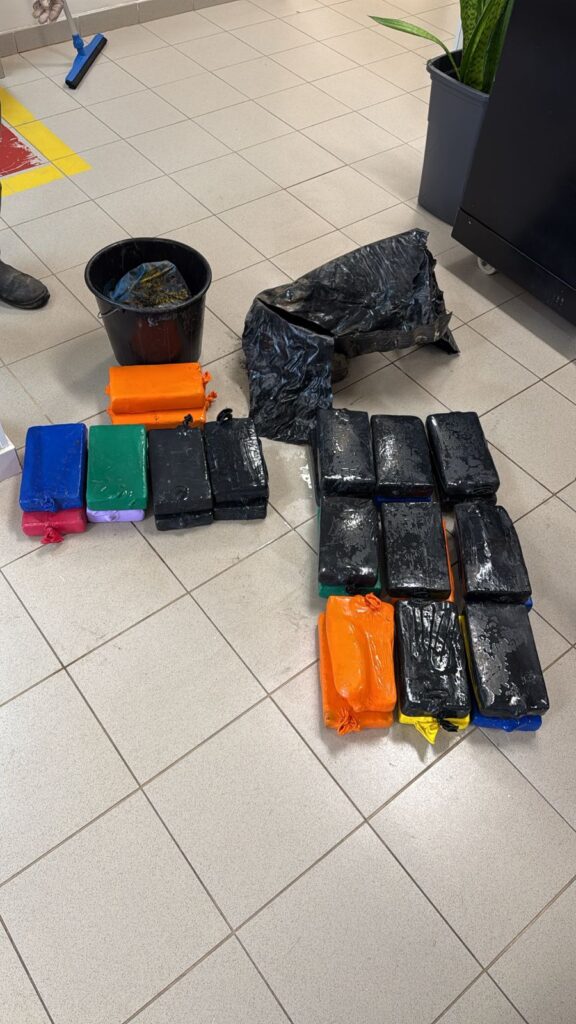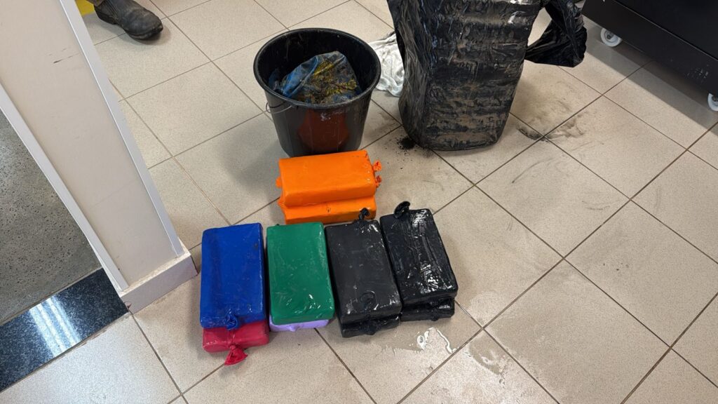 A droga foi localizada após a identificação de material suspeito no casco, junto à tubulação de refrigeração da embarcação. Após a retirada, o conteúdo foi submetido a testes preliminares, que confirmaram se tratar de cocaína.