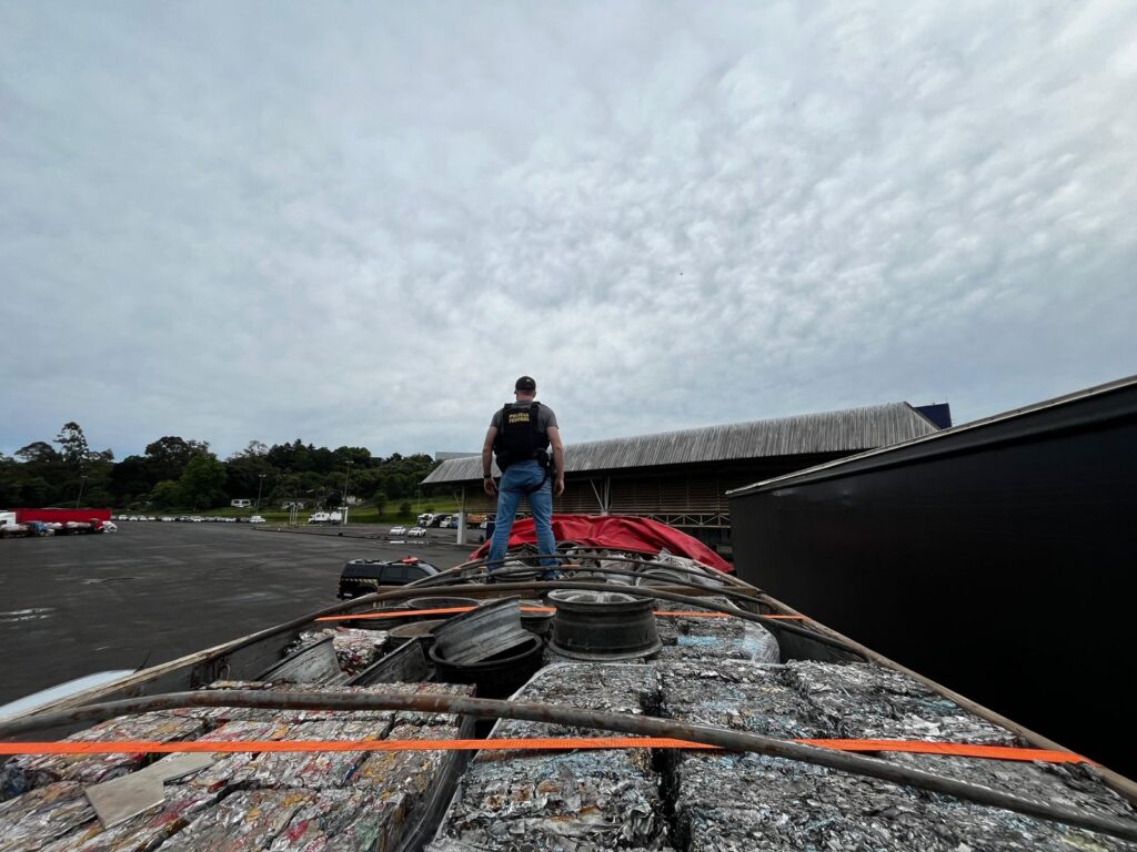 A Polícia Federal apreendeu na manhã desta quinta-feira (13) um caminhão carregado com aproximadamente 30 toneladas de sucata de alumínio contrabandeada da Argentina. A ação ocorreu no município de Barracão, no Paraná, na região de fronteira com Dionísio Cerqueira (SC).