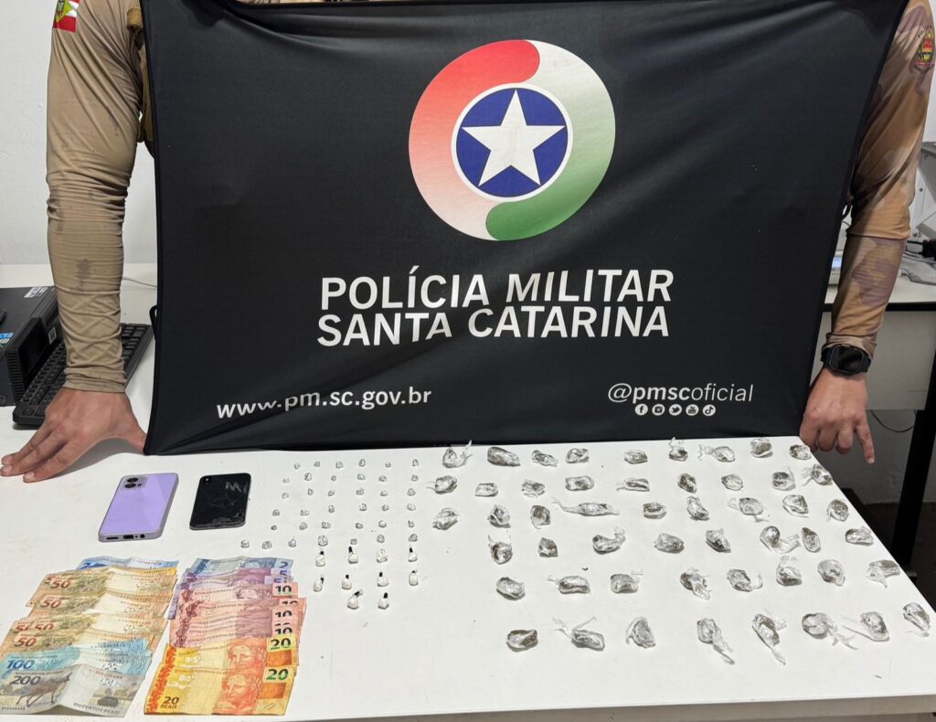A Polícia Militar de Santa Catarina (PMSC) atendeu, na tarde desta quinta-feira (19), uma ocorrência de tráfico de drogas no bairro Quedas do Palmital, em Chapecó, no Oeste do Estado. A ação foi realizada pelo 2º Batalhão de Polícia Militar de Fronteira (2º BPM/Fron) e resultou na apreensão de maconha, crack, cocaína e dinheiro em espécie, além da condução de três pessoas à delegacia.