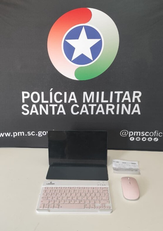 No local, os policiais abordaram o suspeito, que relatou ter adquirido o tablet, além de um mouse e um teclado, de outro homem. Segundo ele, a negociação envolveu a troca por um aparelho celular, além de uma quantia em dinheiro.