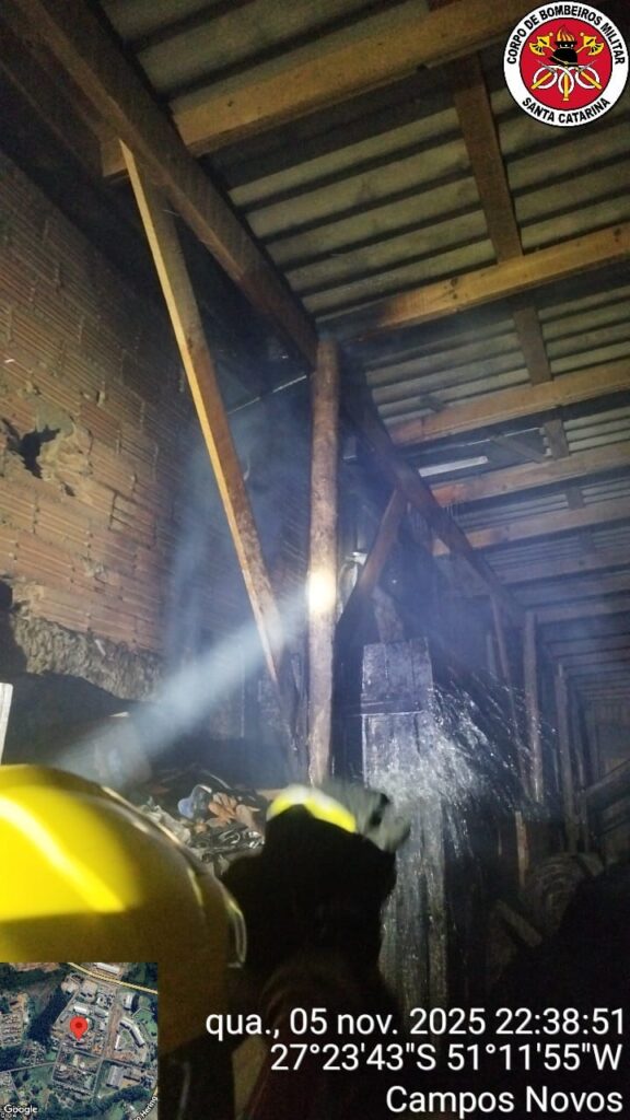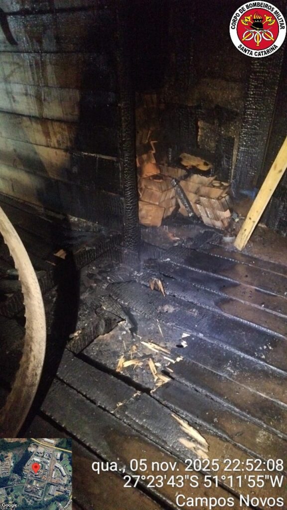 Na noite desta quarta-feira (5), por volta das 22h22, equipes do Corpo de Bombeiros Militar de Campos Novos foram acionadas para atender uma ocorrência de incêndio em uma madeireira localizada na Rua Júlio Henrique Ribeiro, no bairro Aparecida.